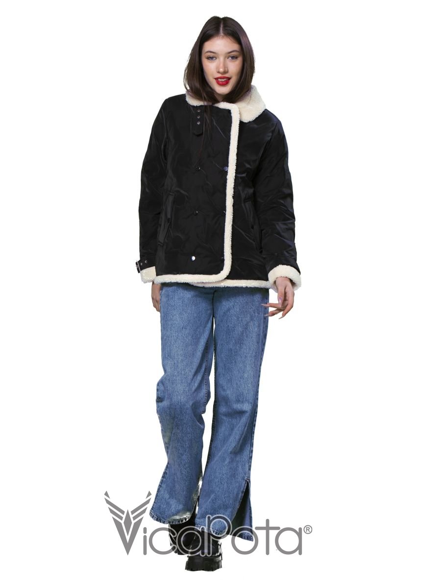 Пришлая весна, а вместе с ней - время обновить свой гардероб. Наша весенняя женская текстильная куртка с легким утеплением создана, чтобы предоставить вам комфорт и стиль на протяжении всего сезона. Ткань куртки переливается как бархат и очень приятная на прикосновенье, которое делает ее идеальной для любых условий. Модная отделка шерпой белого цвета и прямой покрой в стиле пилот прибавляют куртке элегантности и особого шарма. Куртка черного цвета прекрасно объединяется с любым стилем и поможет вам создать неповторимый образ. Она подойдет для разных мер - от прогулок до города к походам на природу. Не теряйте времени и заказывайте уже сегодня!