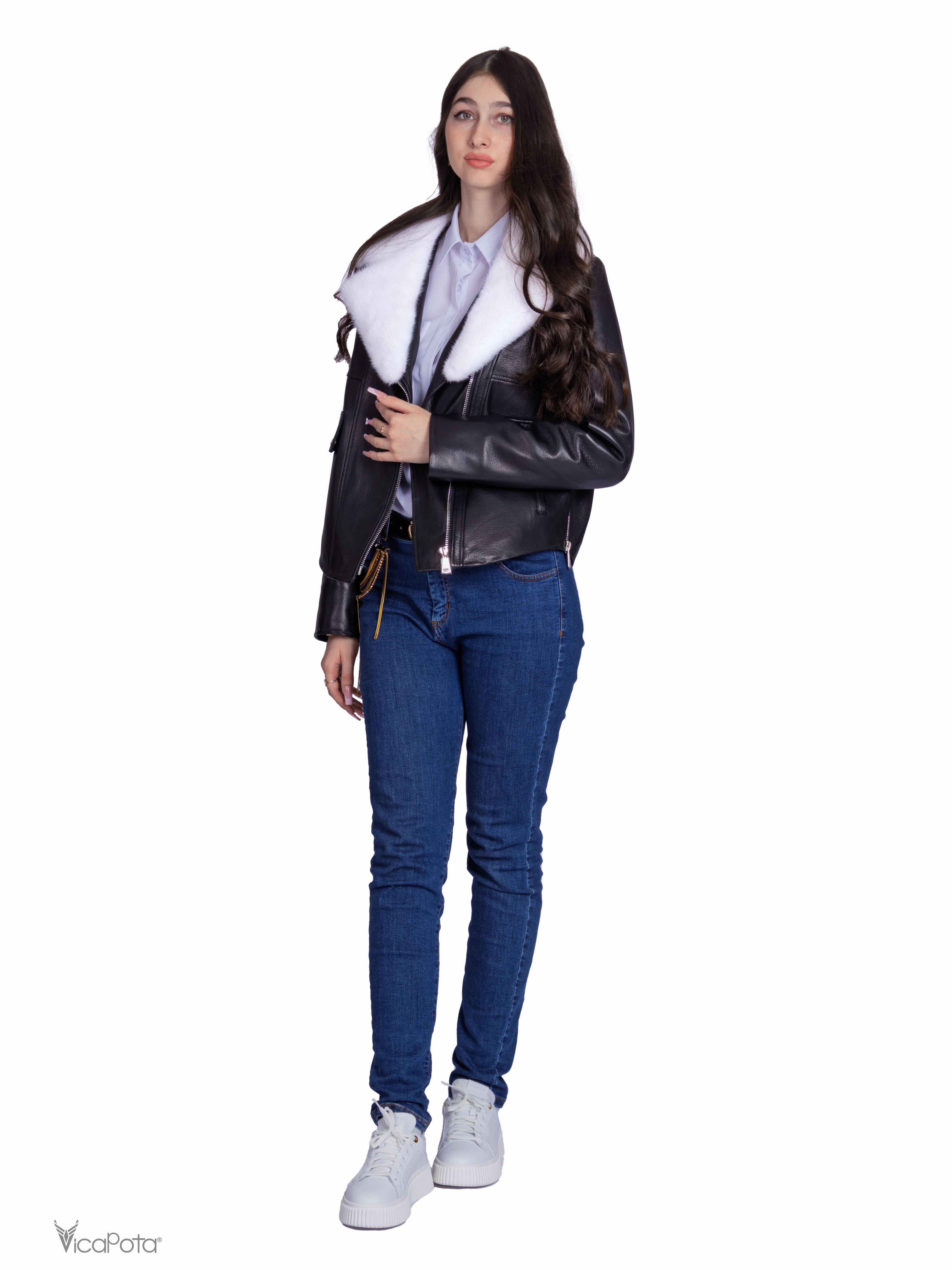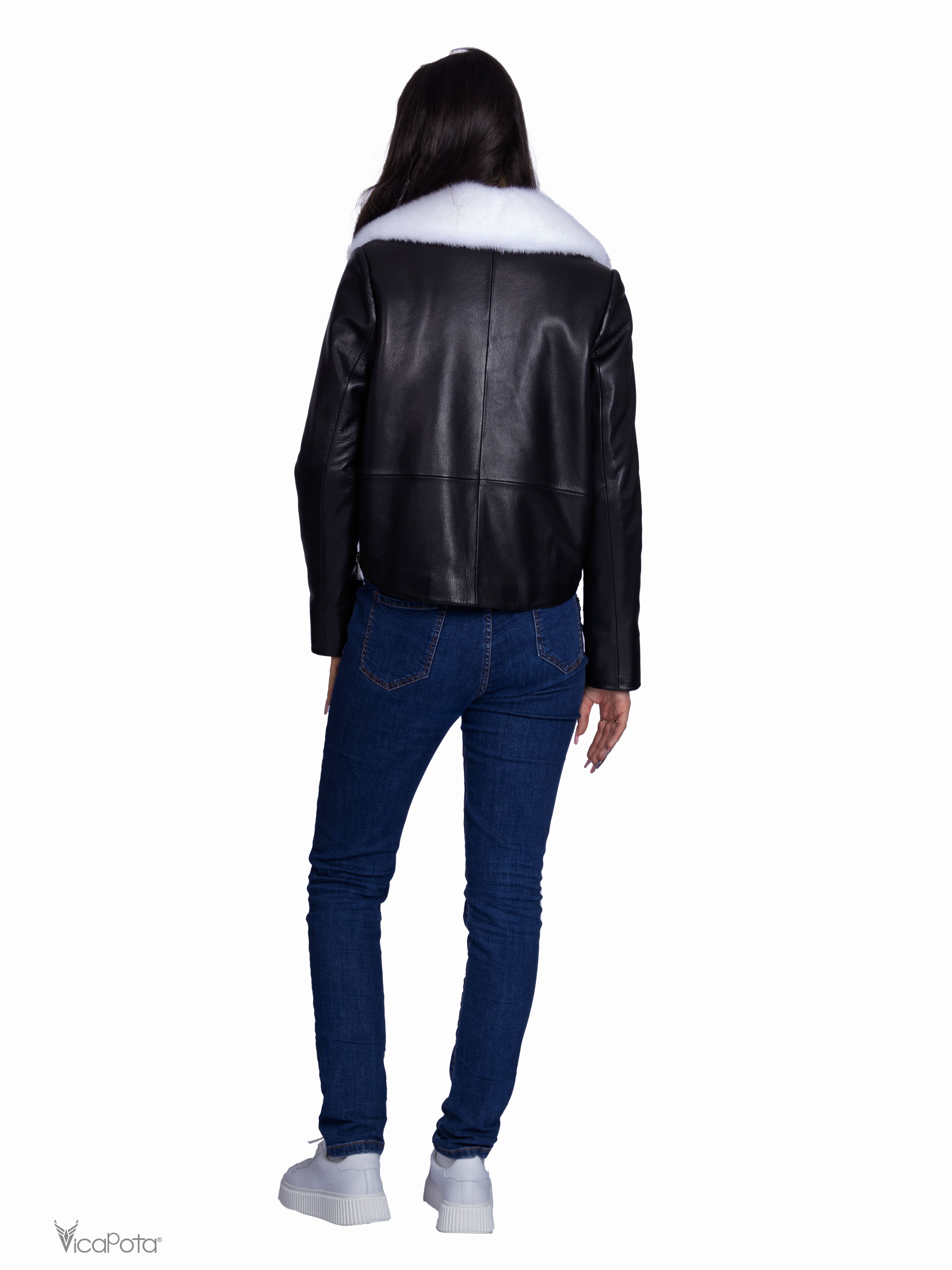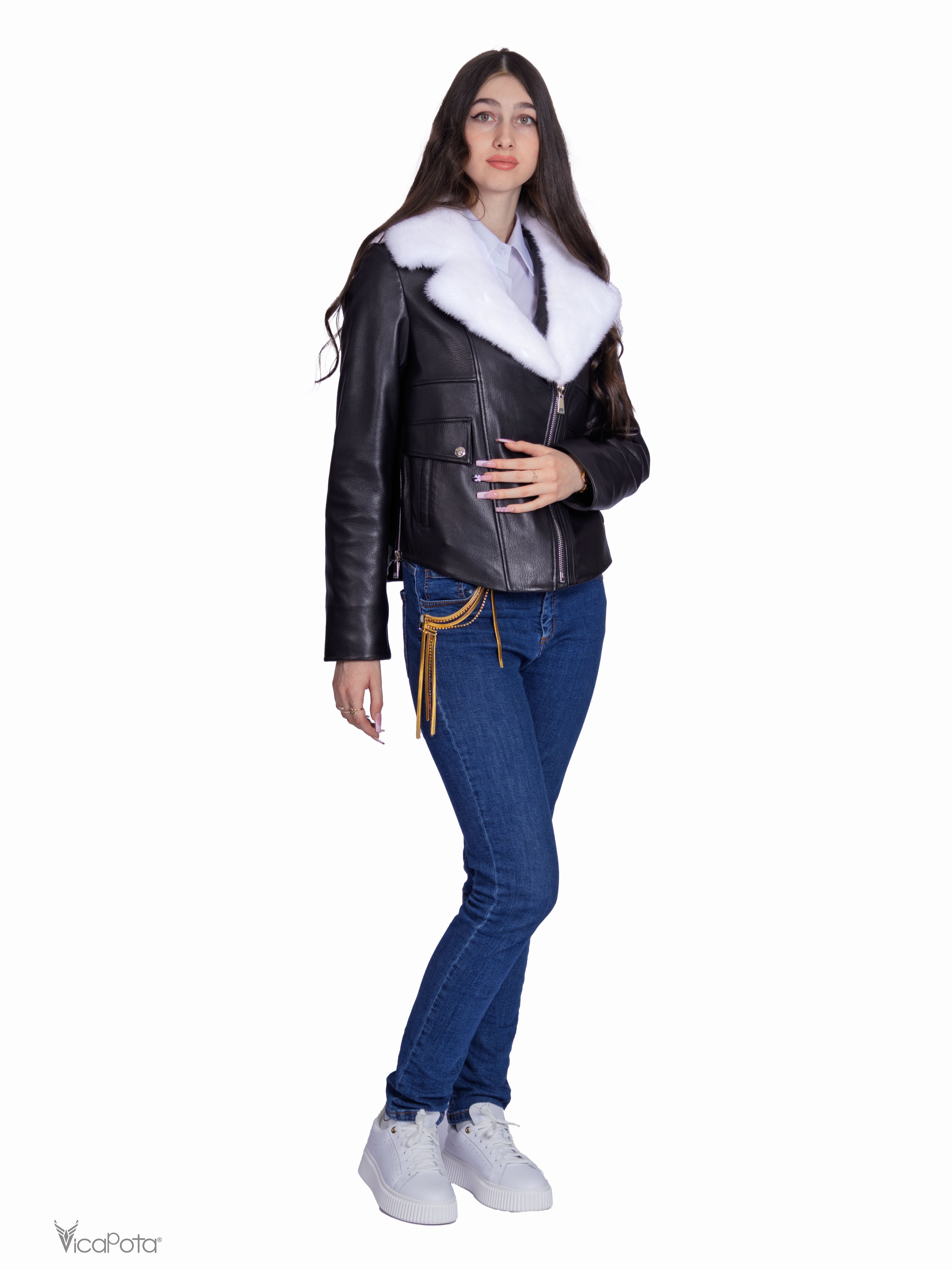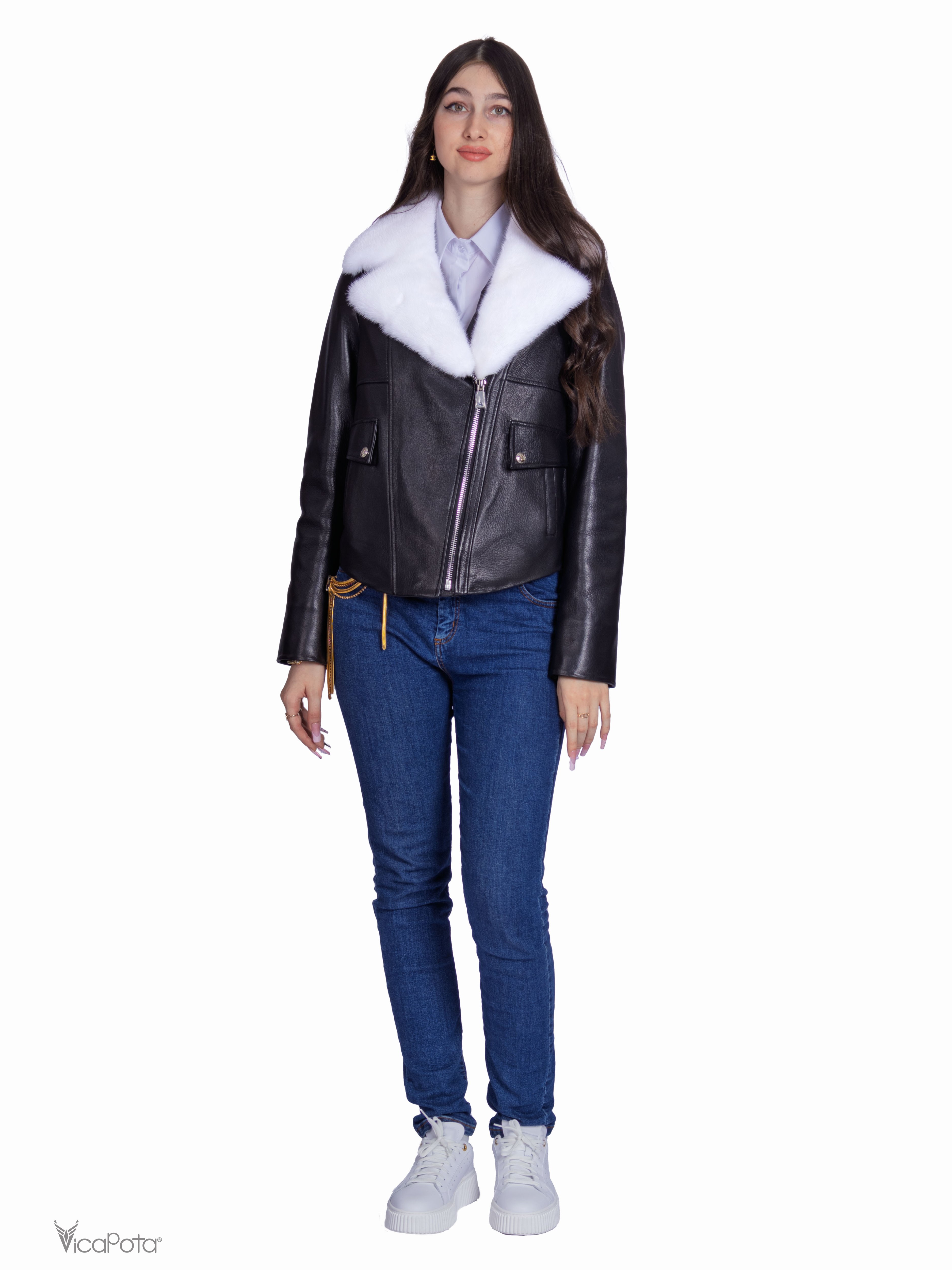 **Кожаная косуха прямого кроя с натуральным норковым воротником** – сочетание элегантности, комфорта и практичности.