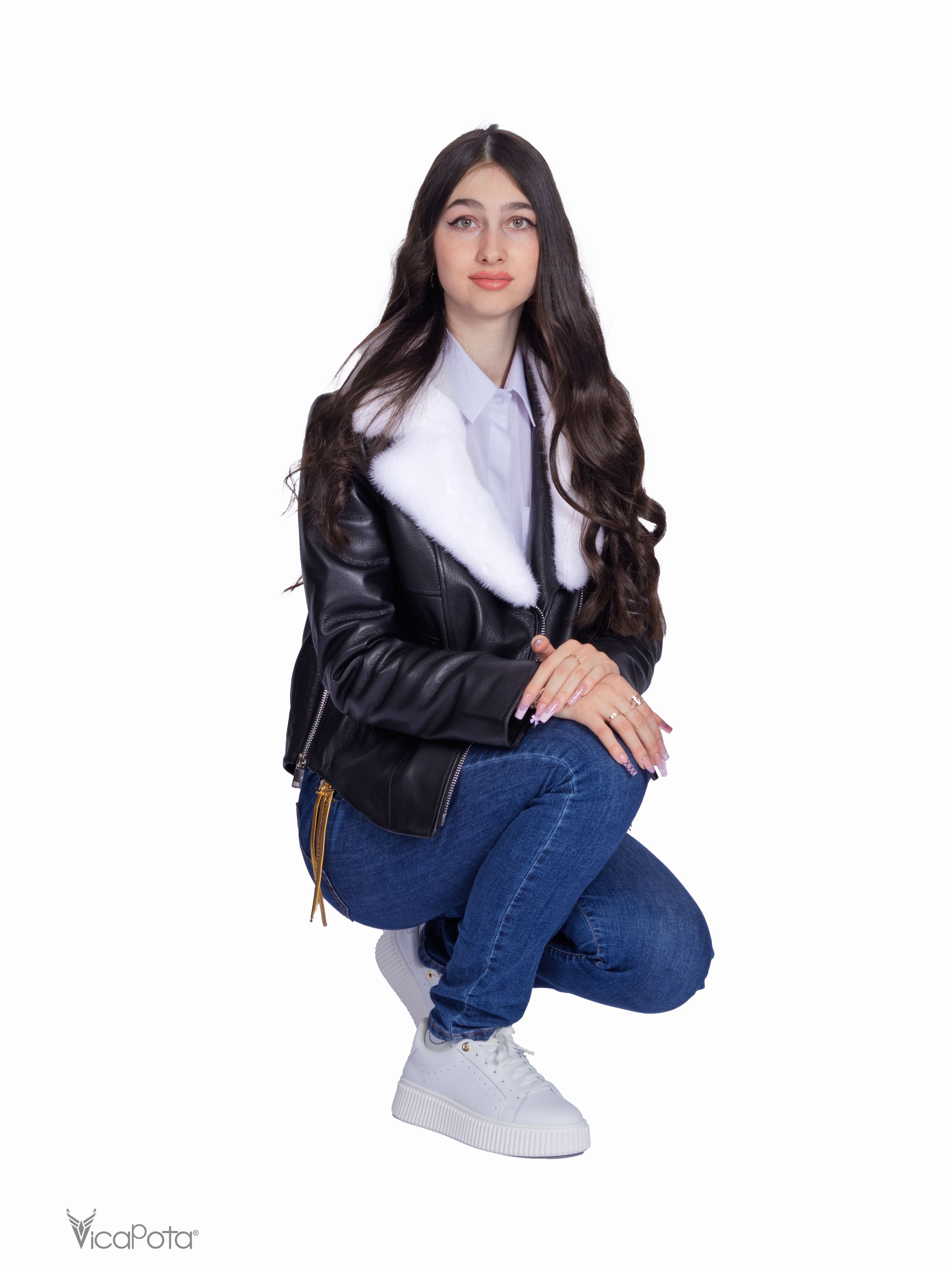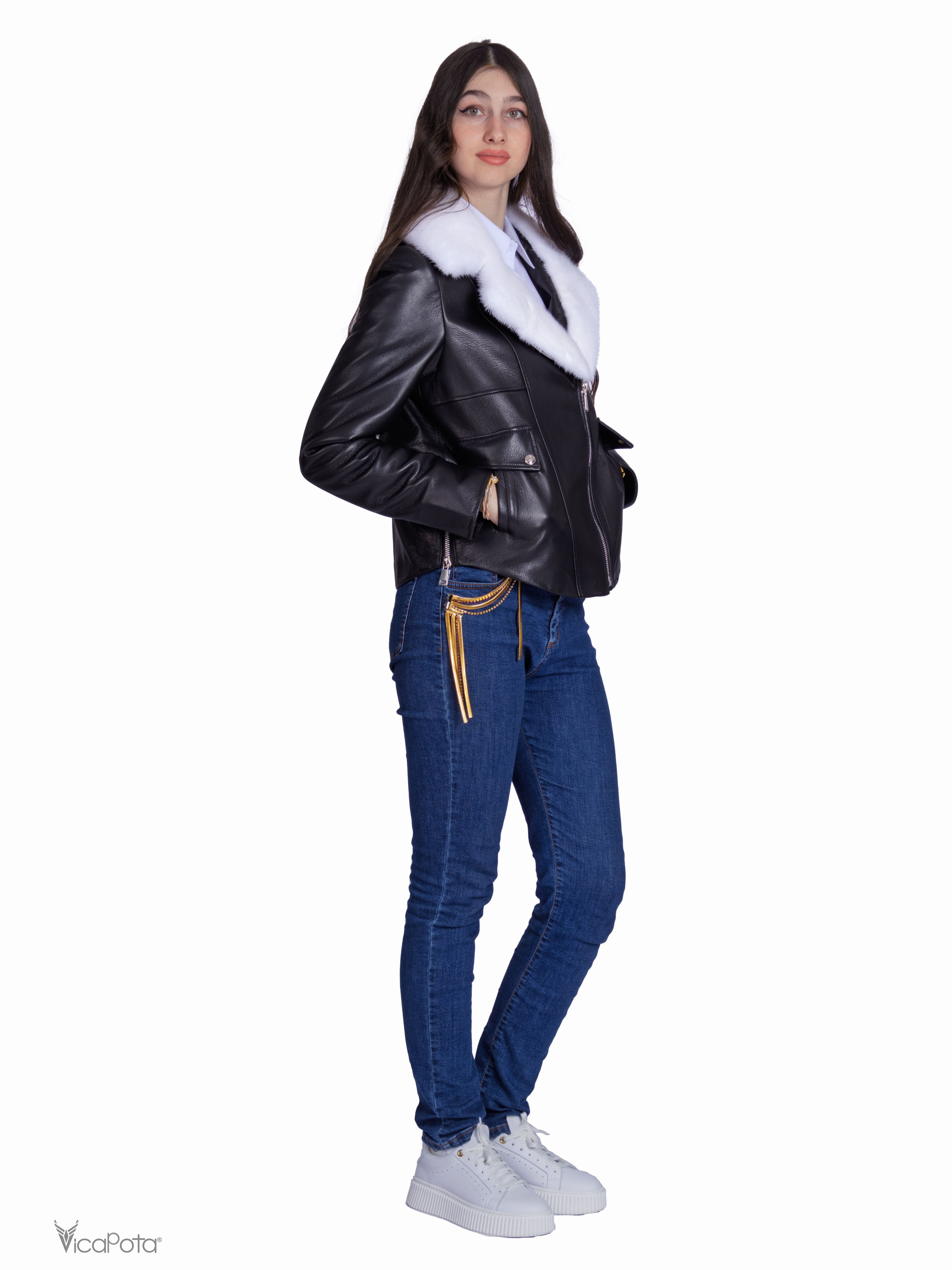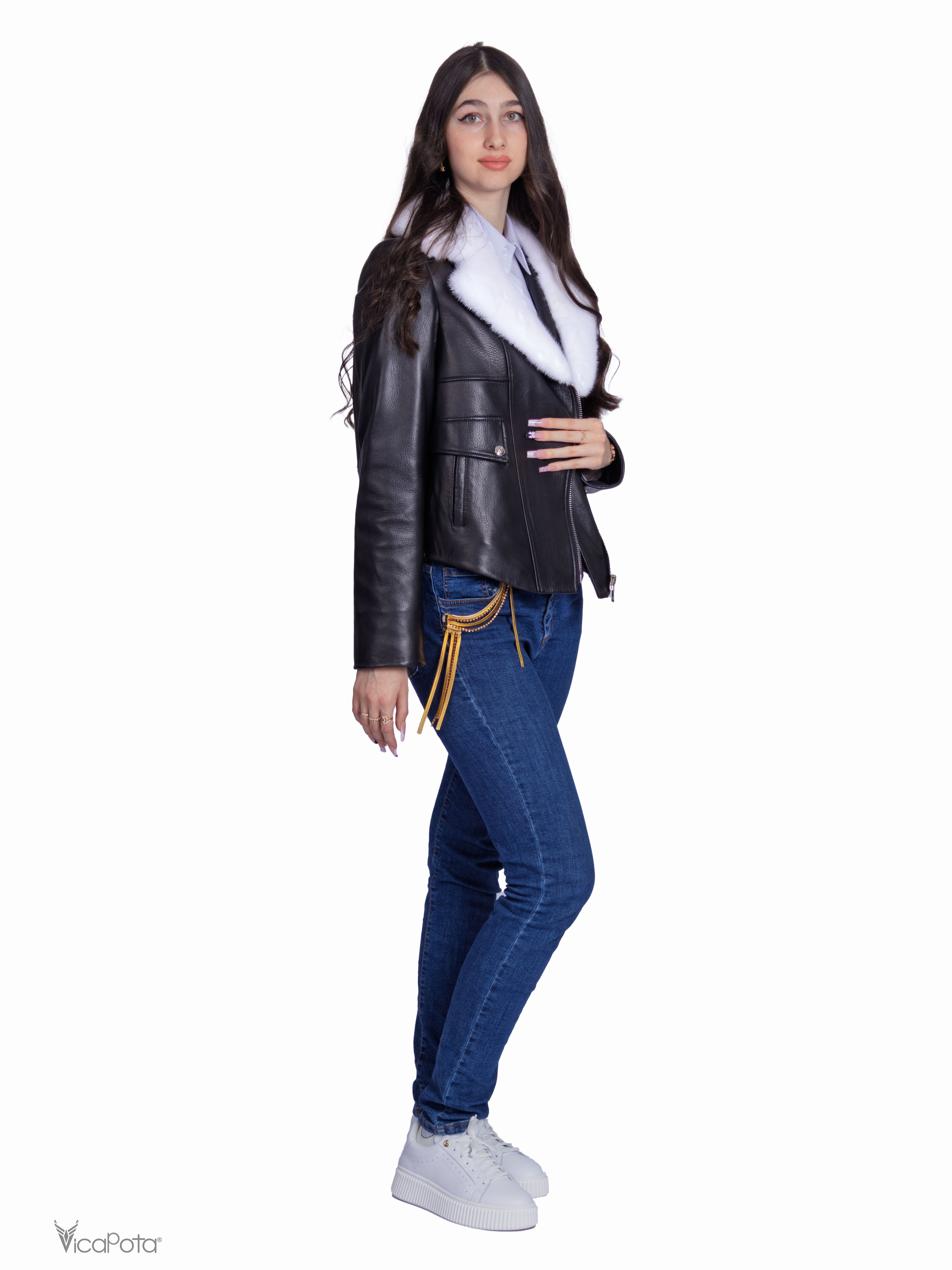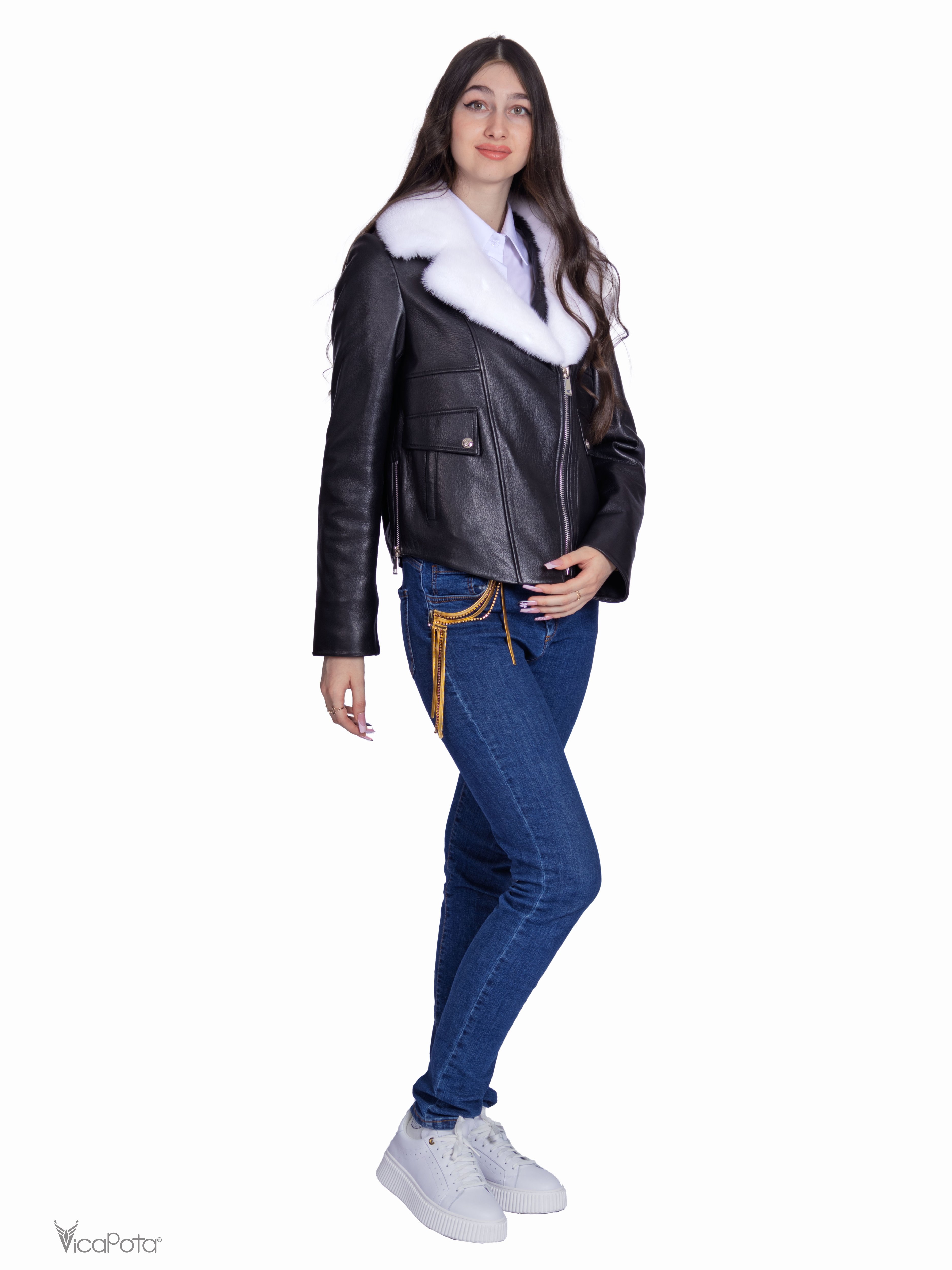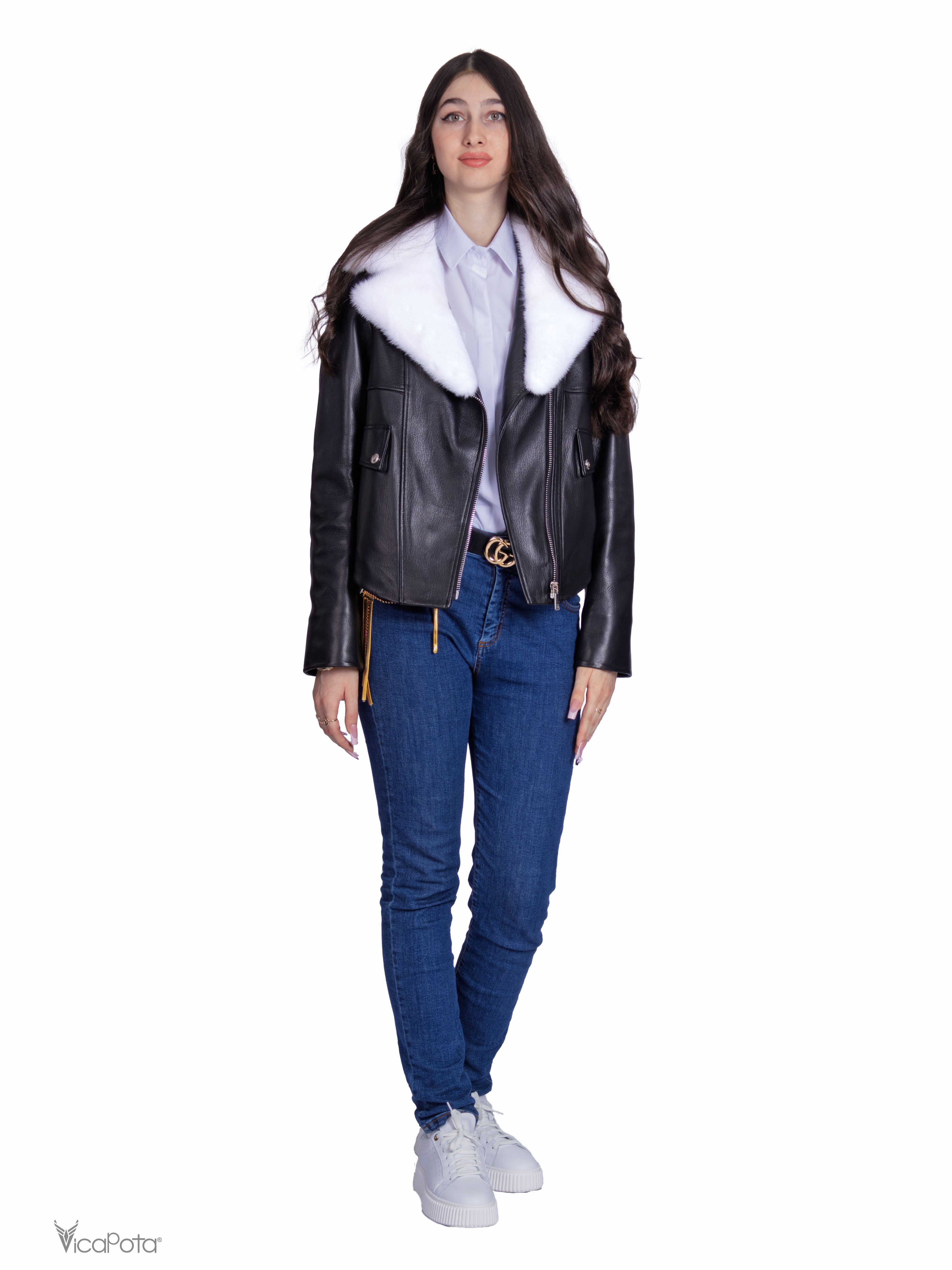 **Кожаная косуха прямого кроя с натуральным норковым воротником** – сочетание элегантности, комфорта и практичности.