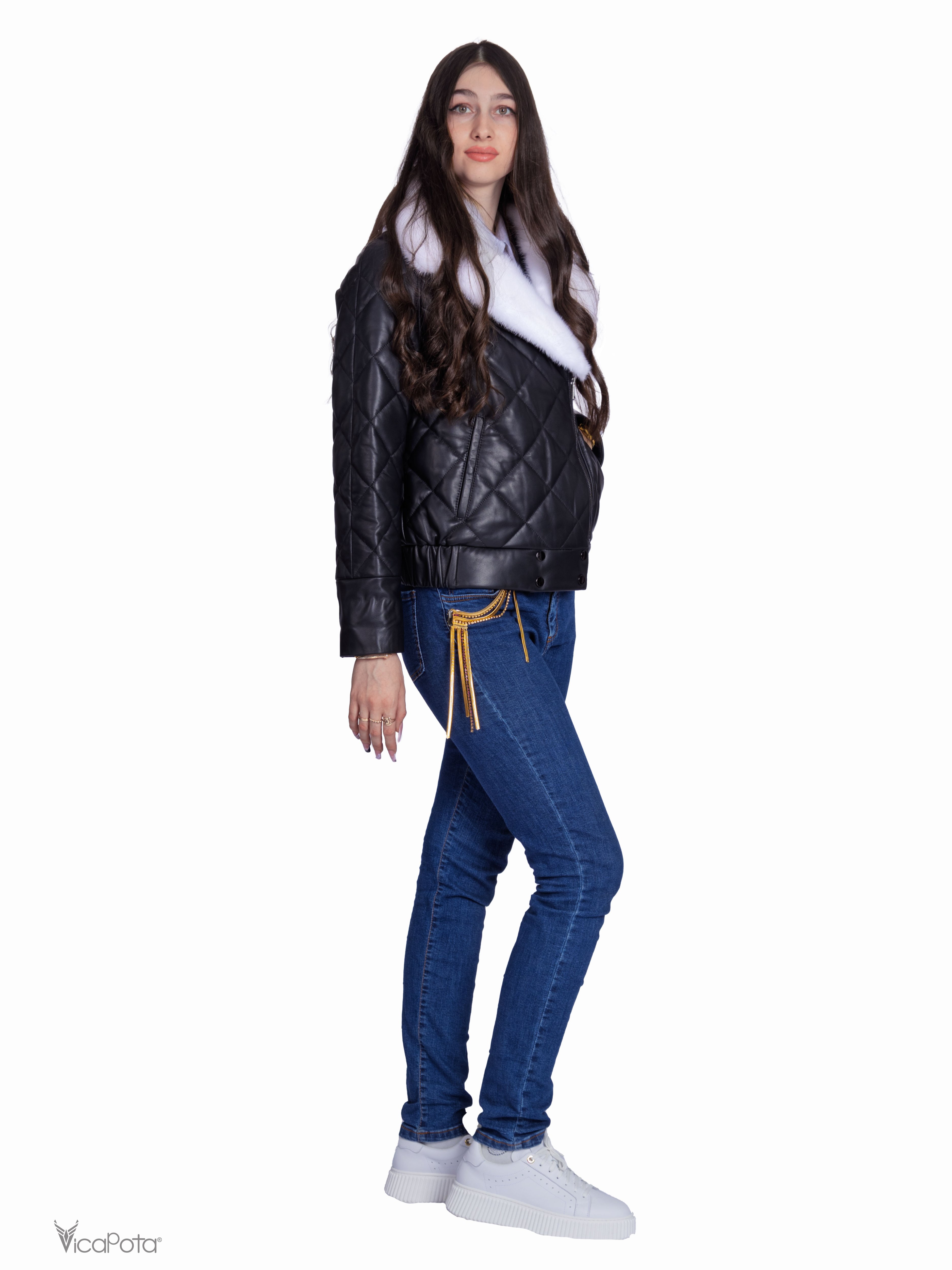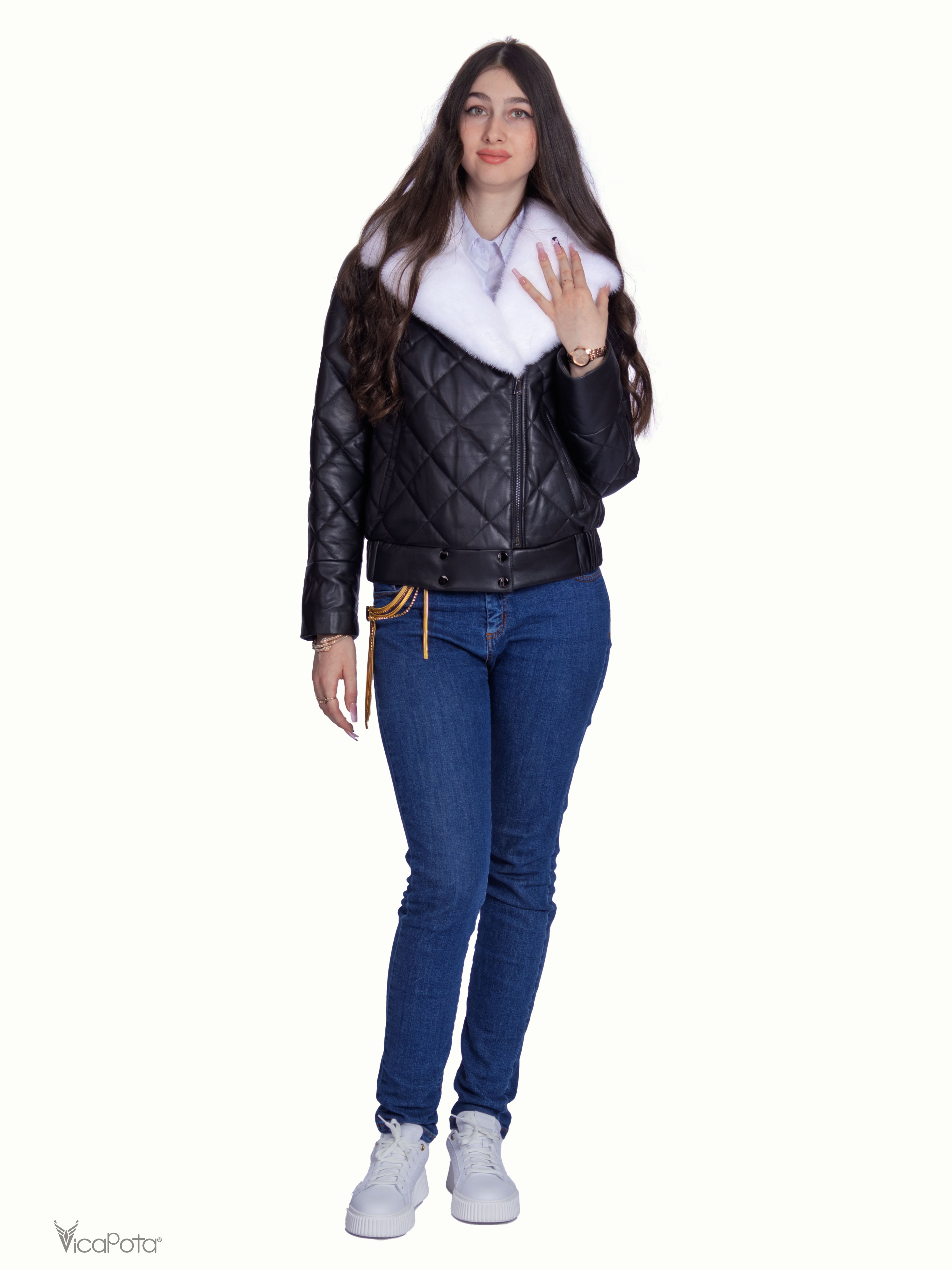 **Утеплённая стёганая кожаная куртка** – идеальное сочетание элегантности и практичности.