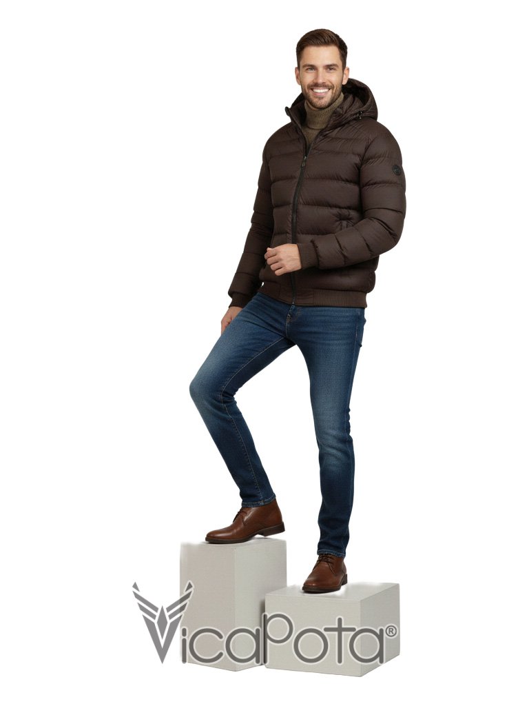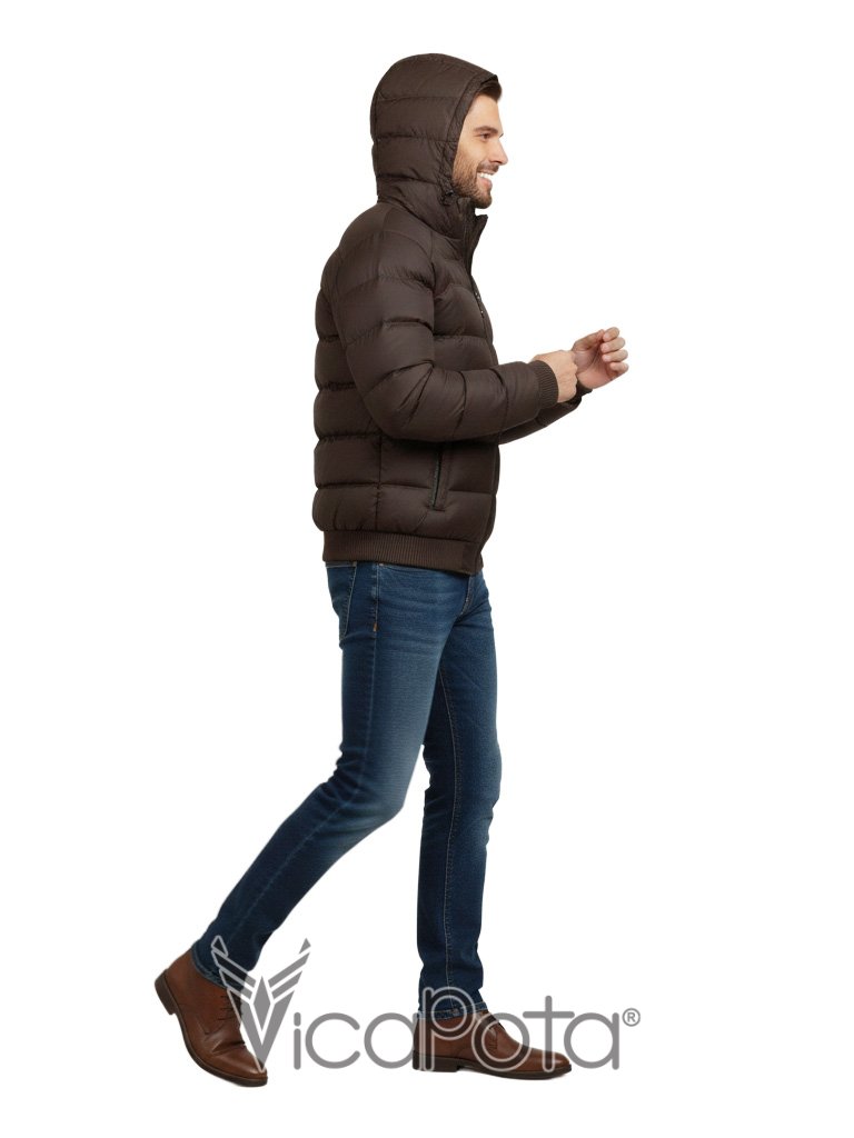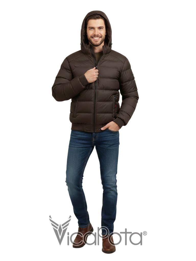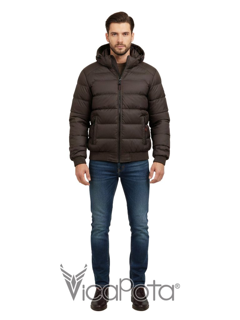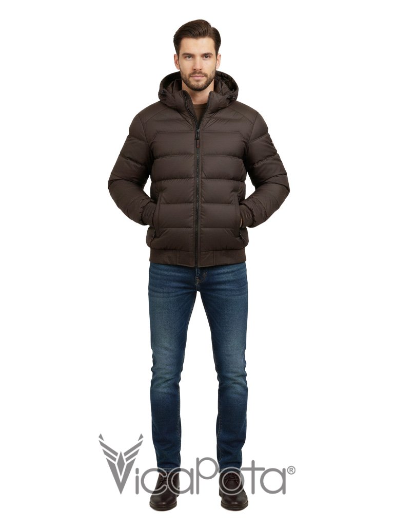Стильная мужская куртка укороченного фасона в практичном коричневом цвете. Модель типа «бомбер» — идеальное решение для повседневной носки в городе и вождения автомобиля. Благодаря длине 65 см и эластичному низу, изделие обеспечивает комфортную посадку и свободу движений.