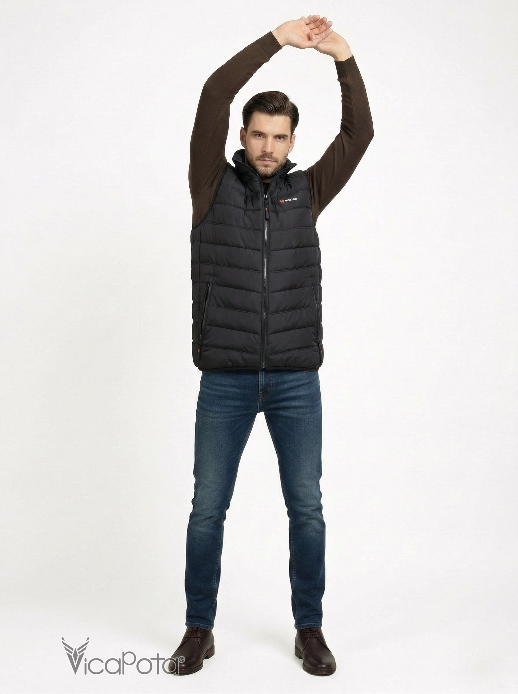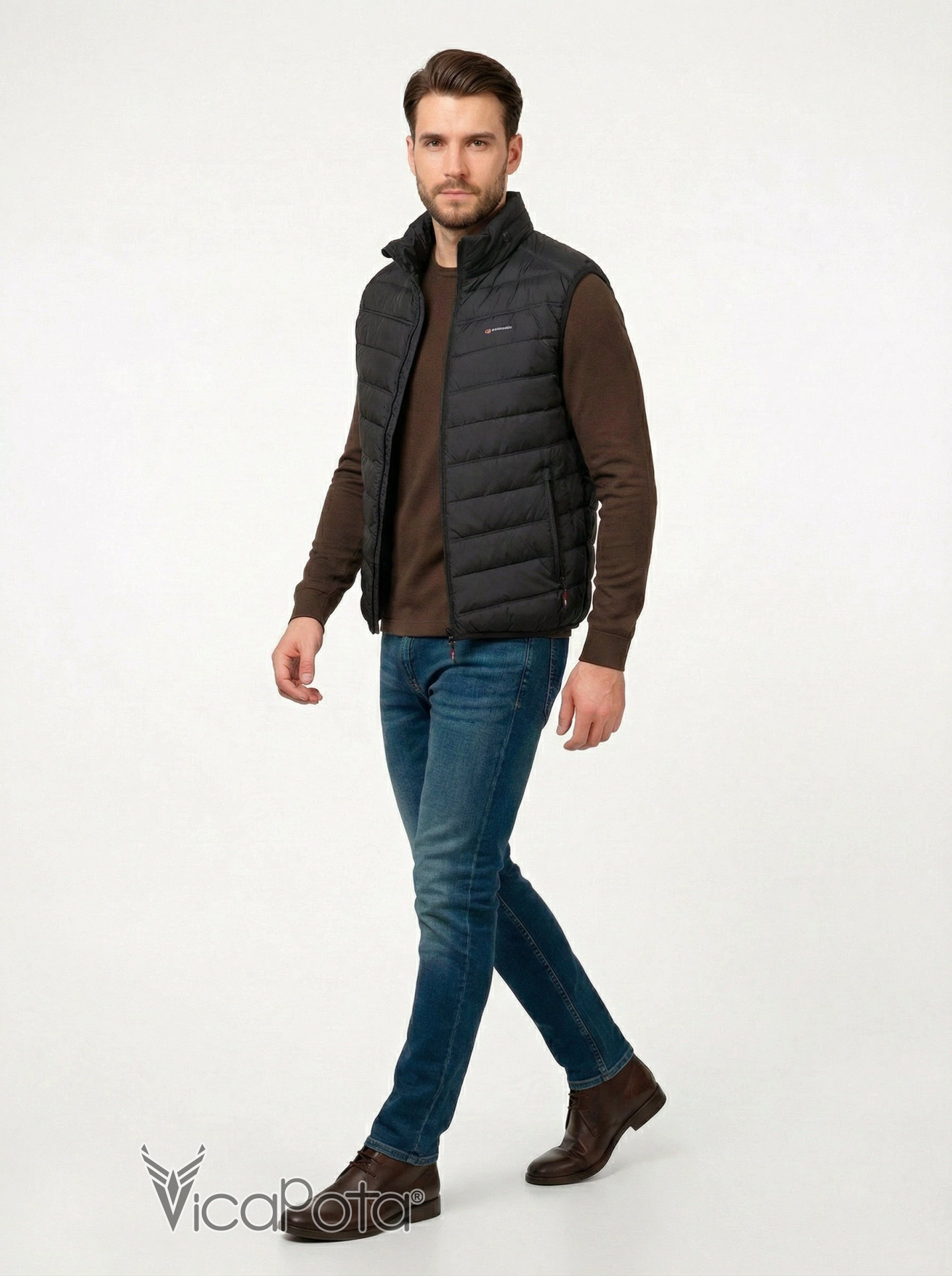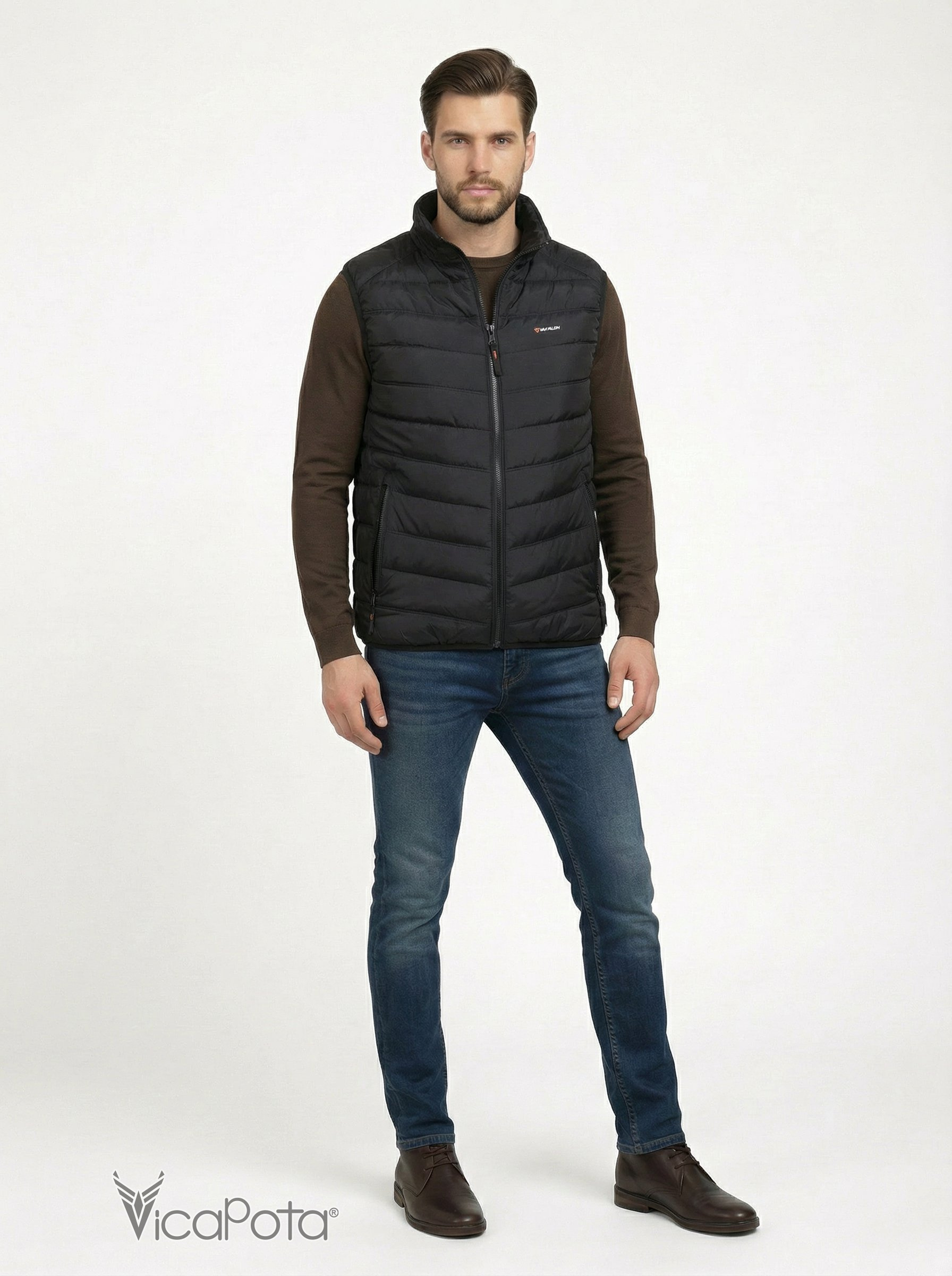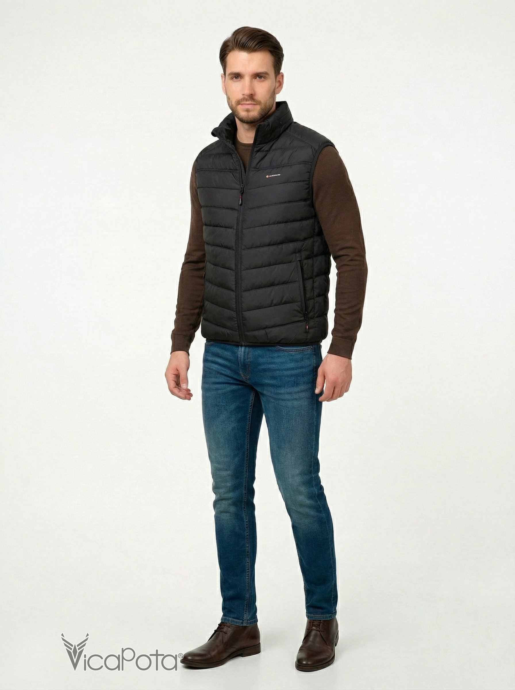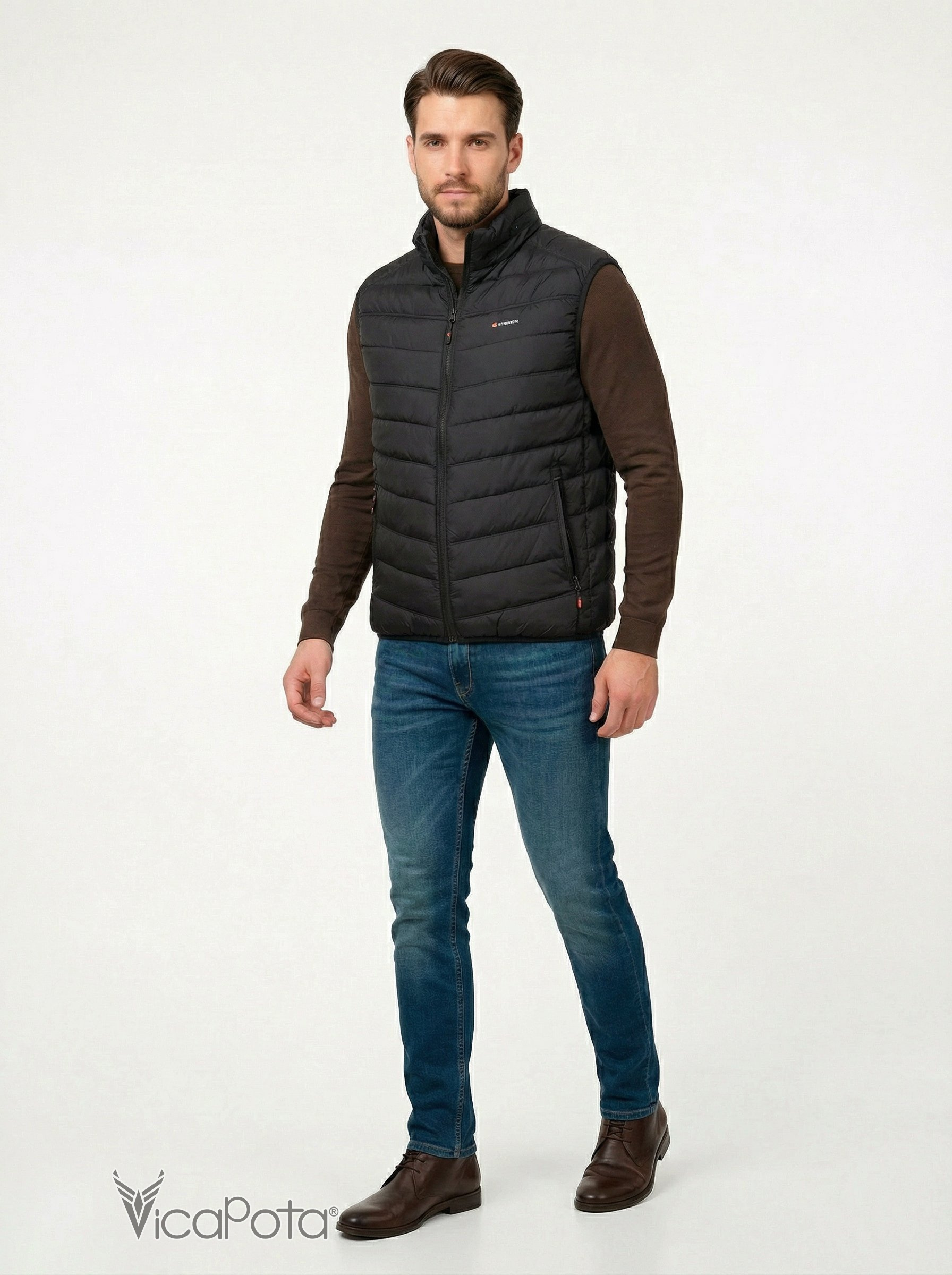 Мы рады представить вам мужественную жилетку с воротником стойкой и центральной змейкой! Этот черный жилет имеет два кармана на змейке и два больших внутренних кармана, где можно безопасно сохранять свои личные вещи. Жилетка пошита по технологии в один шов, который обеспечивает максимальный комфорт и удобство. Эта легкая жилетка подходит для ношения в весеннюю и осеннюю пору года.