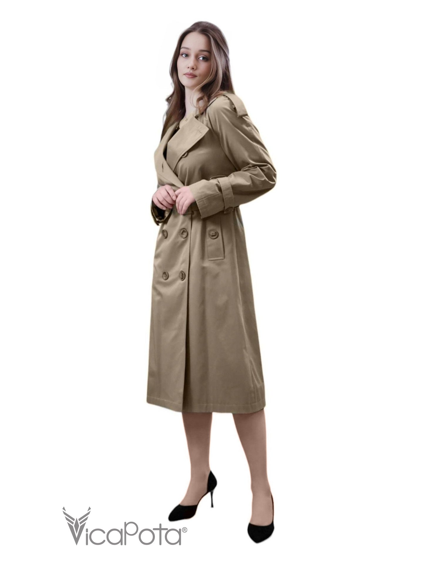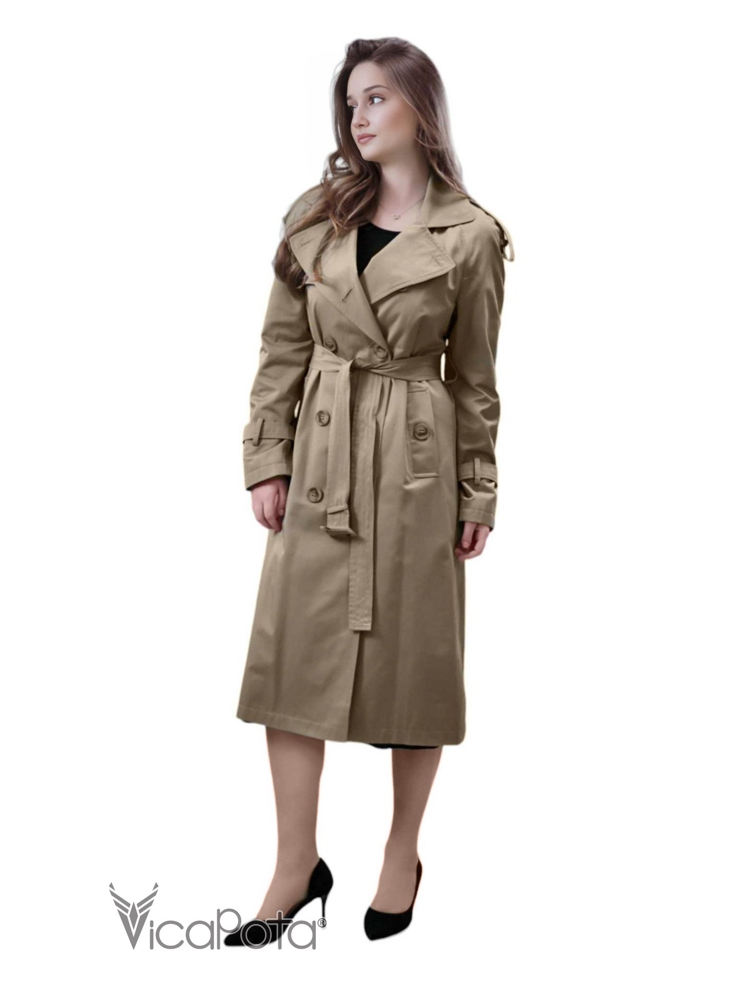 Элегантный тренч цвета кемел длиной 110 см станет отличным выбором для тех, кто ценит стиль и практичность. Модель выполнена из высококачественной ткани, состоящей из 50% вискозы и 50% полиэстера, что обеспечивает комфорт и долговечность. Классический двубортный фасон с поясом акцентирует талию, создавая утончённый силуэт и добавляя образу женственности и элегантности. Тренч идеально подходит как для деловых, так и для повседневных образов, придавая им шарм и стиль. Универсальный цвет кемел легко сочетается с любыми элементами гардероба, подчёркивая ваш безупречный вкус. Этот тренч — идеальное решение для весны и осени, когда хочется выглядеть стильно и уверенно в любую погоду.