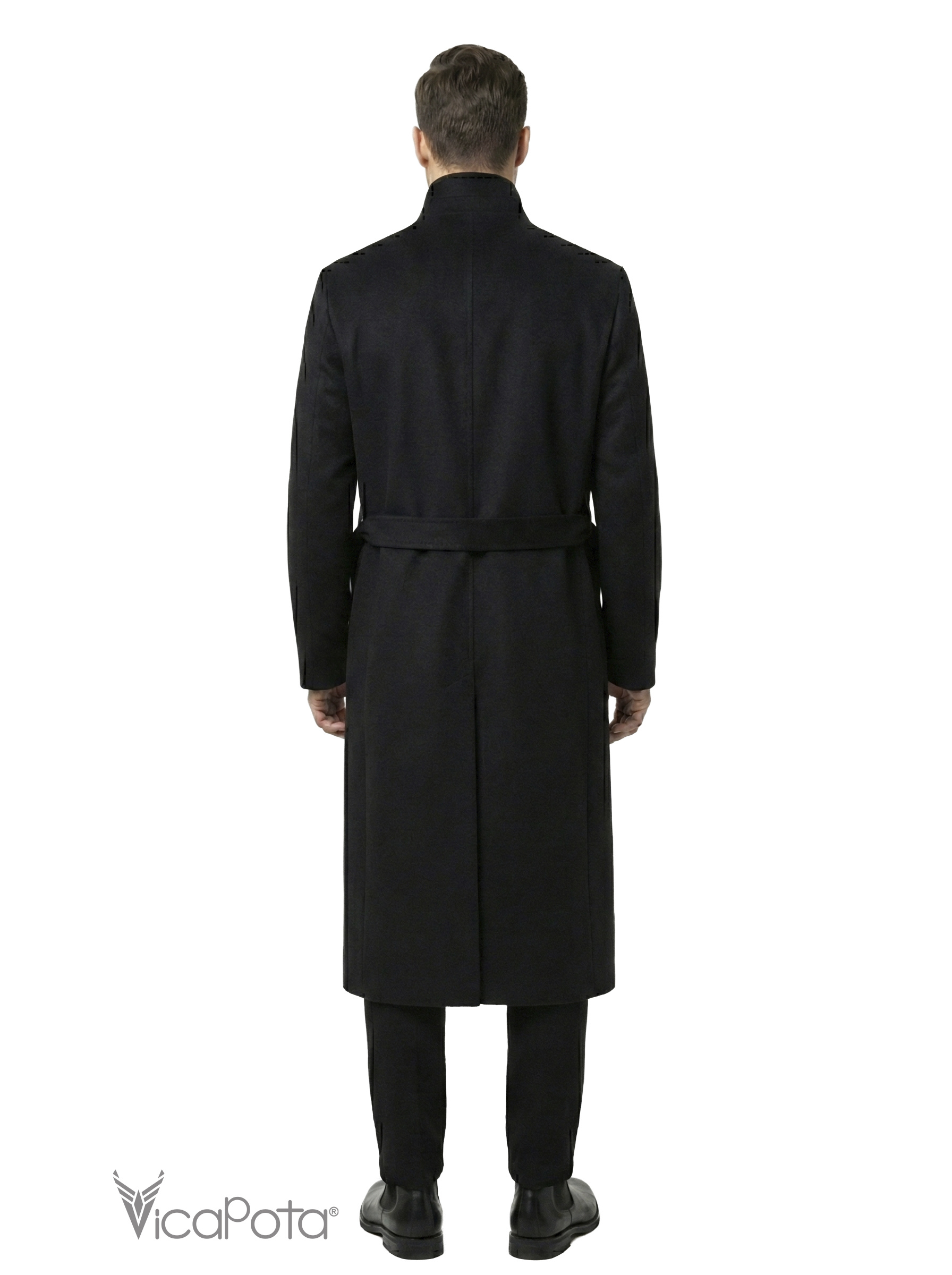 Мужское удлиненное пальто Victor Enzo (120 см) — Черный Кашемир с Поясом