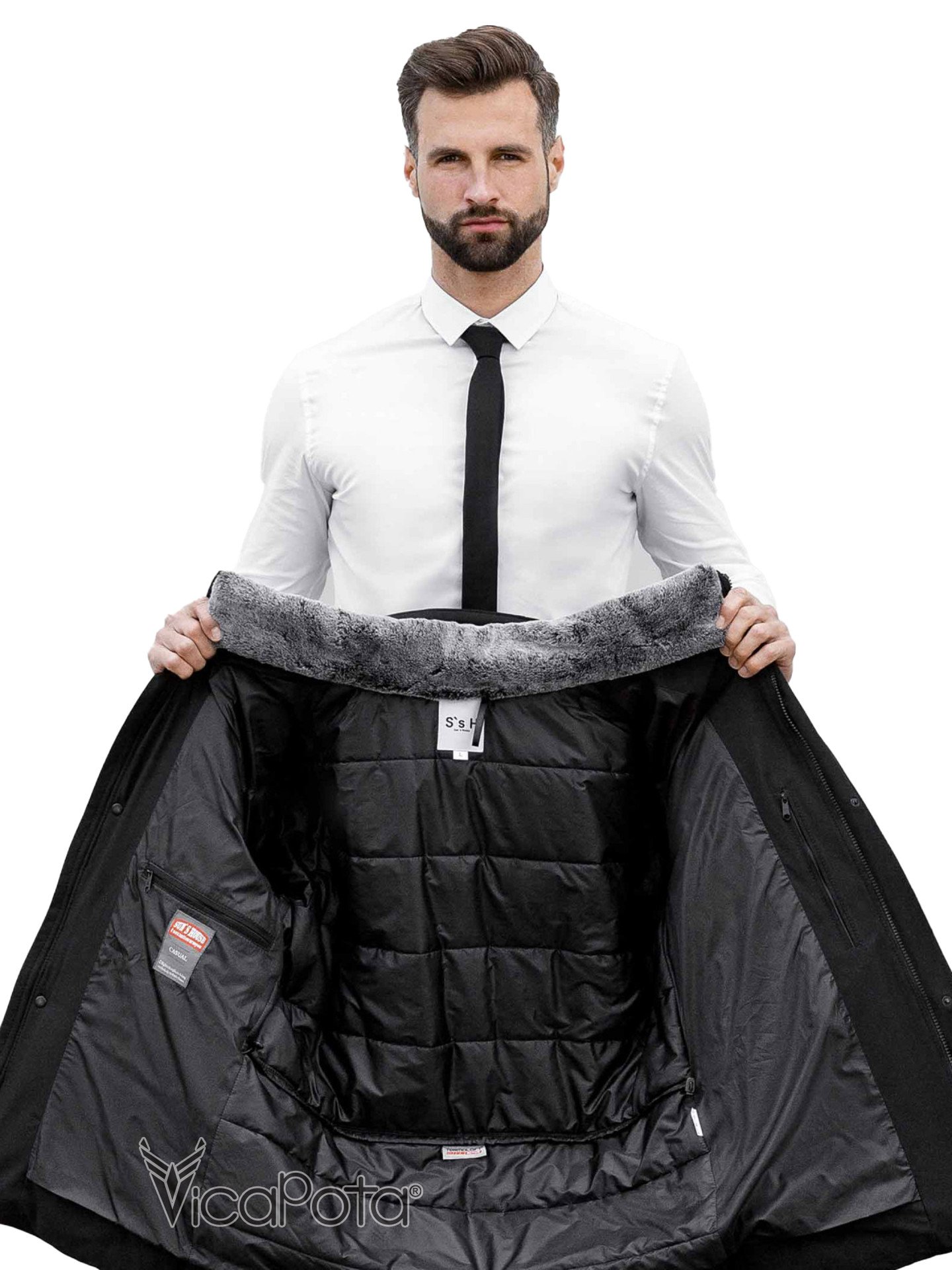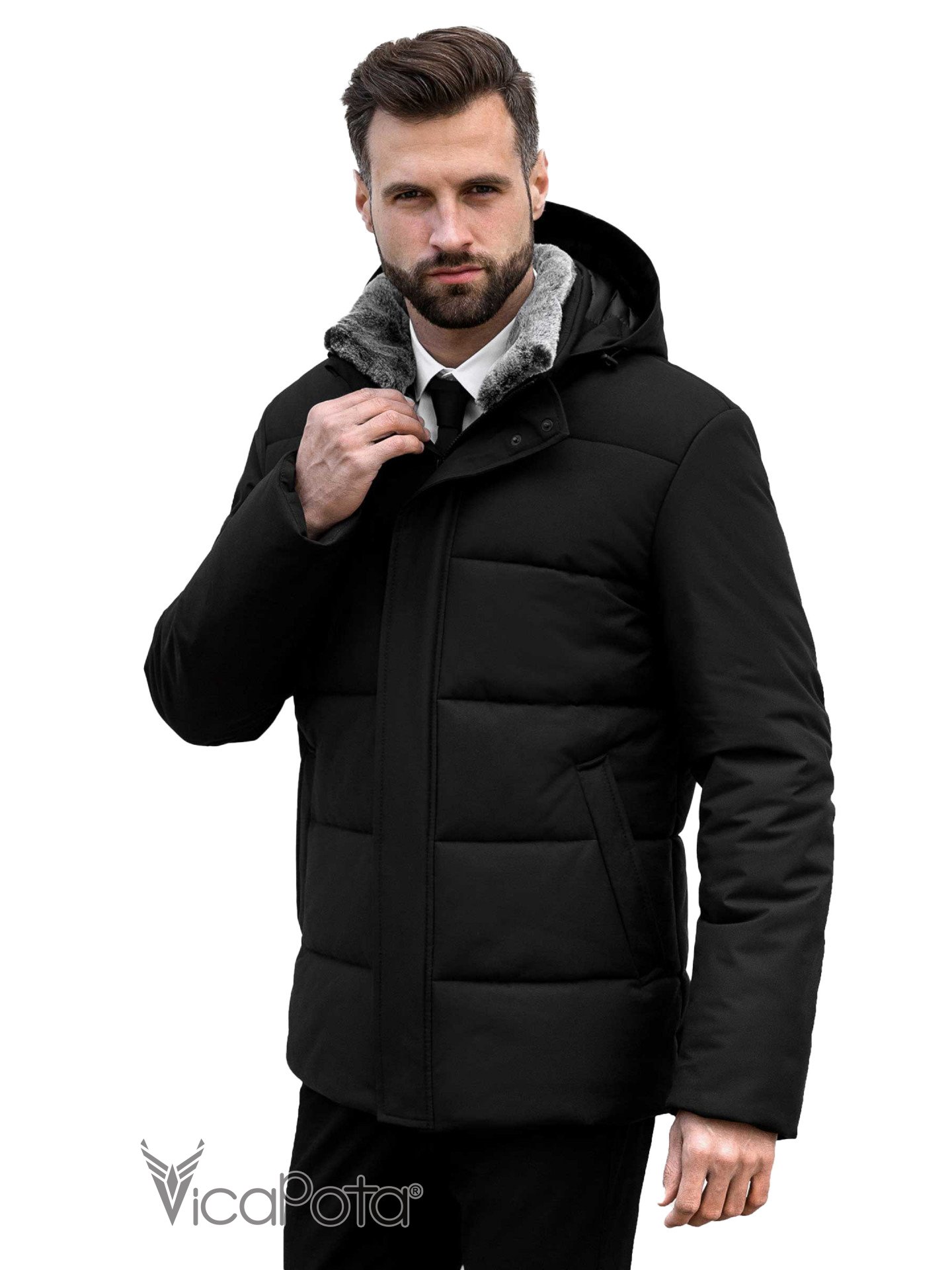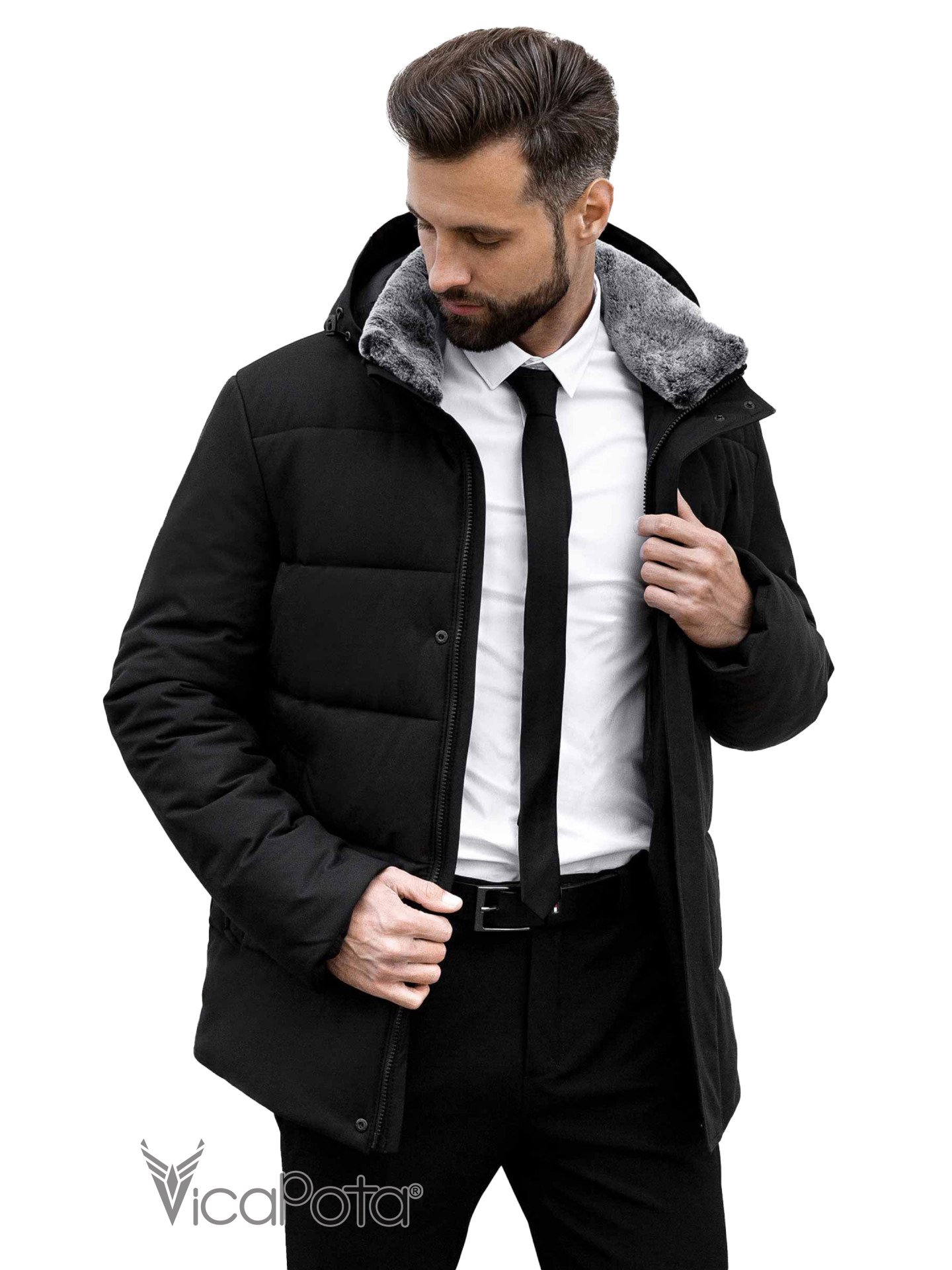 ✔️ воротник дополнительно утеплен искусственным съёмным мехом.