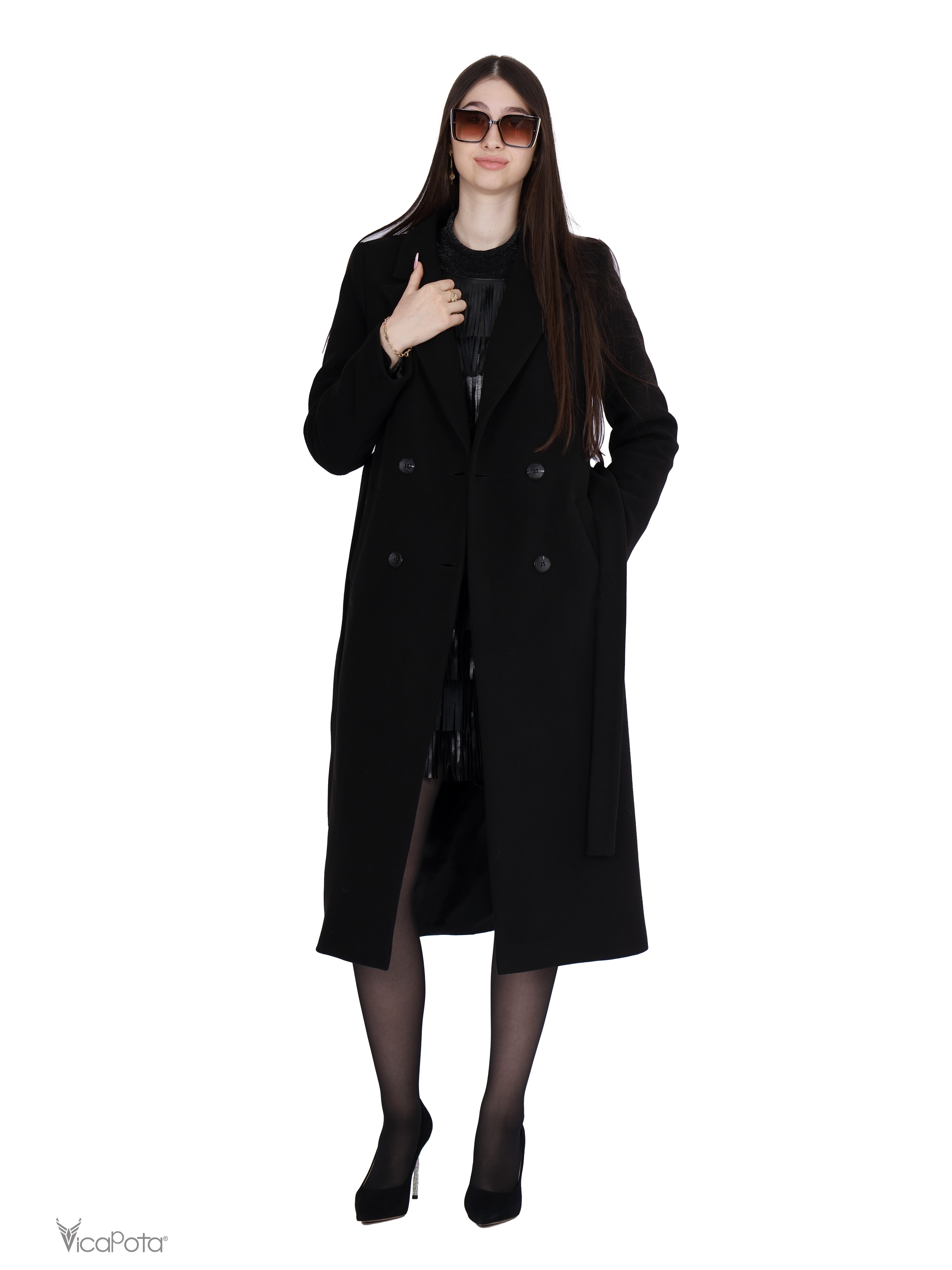 Кашемировое зимнее пальто для женщин 48-216