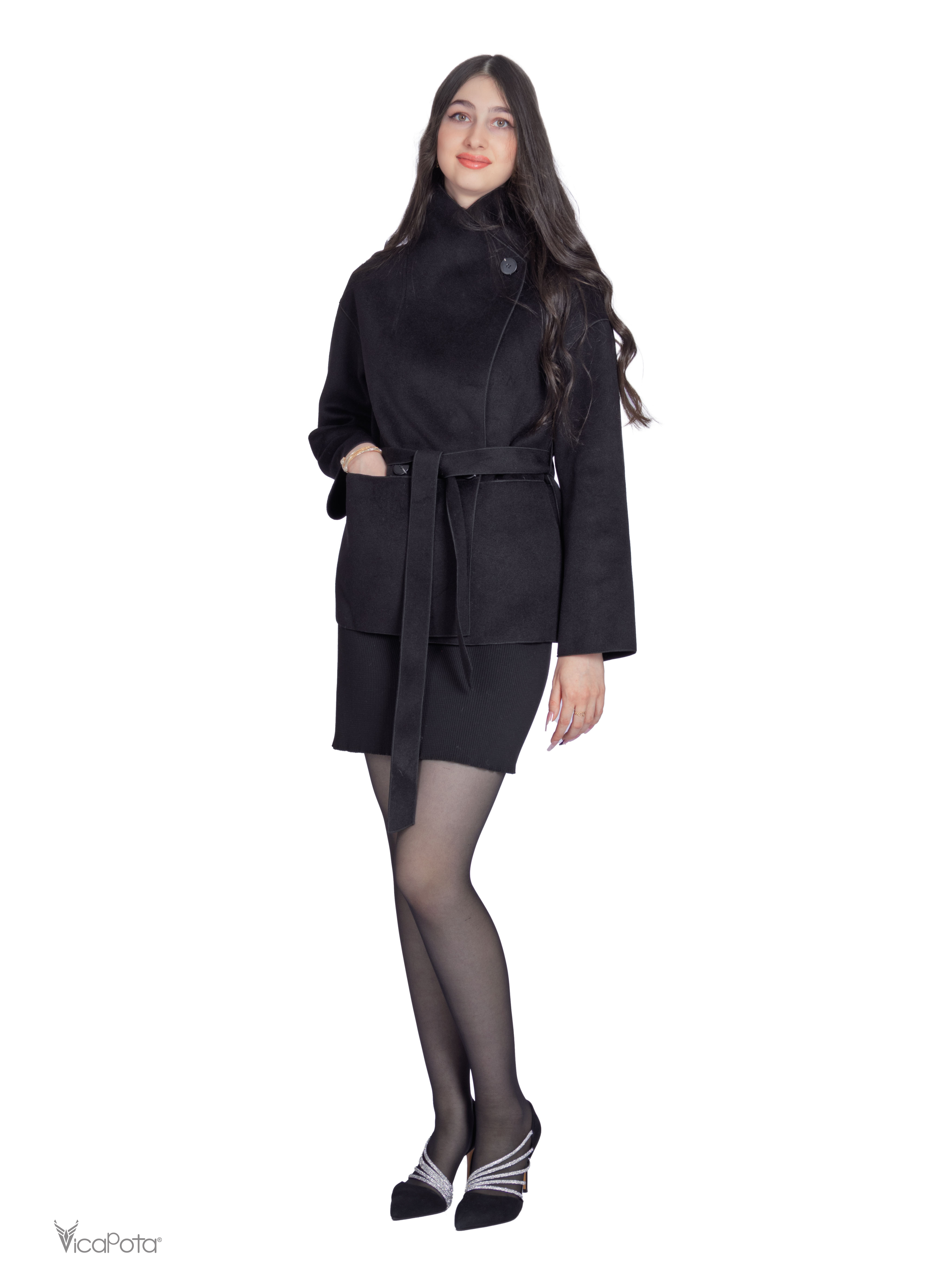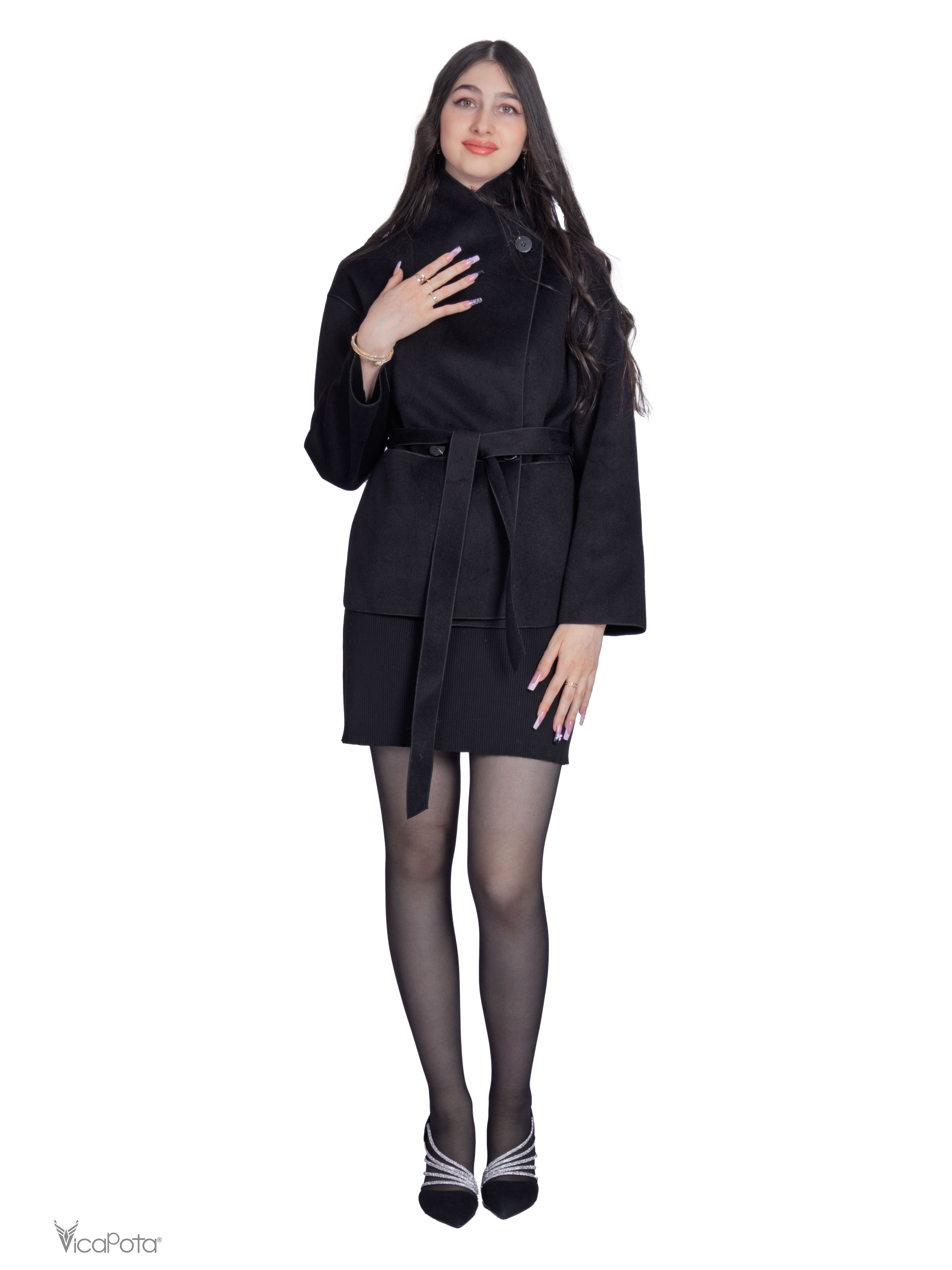 Пальто-халат на запах — втілення жіночності та елегантності. М'який силует обволікає фігуру, пояс підкреслює талію, а якісна вовняна тканина забезпечує тепло та комфорт.
