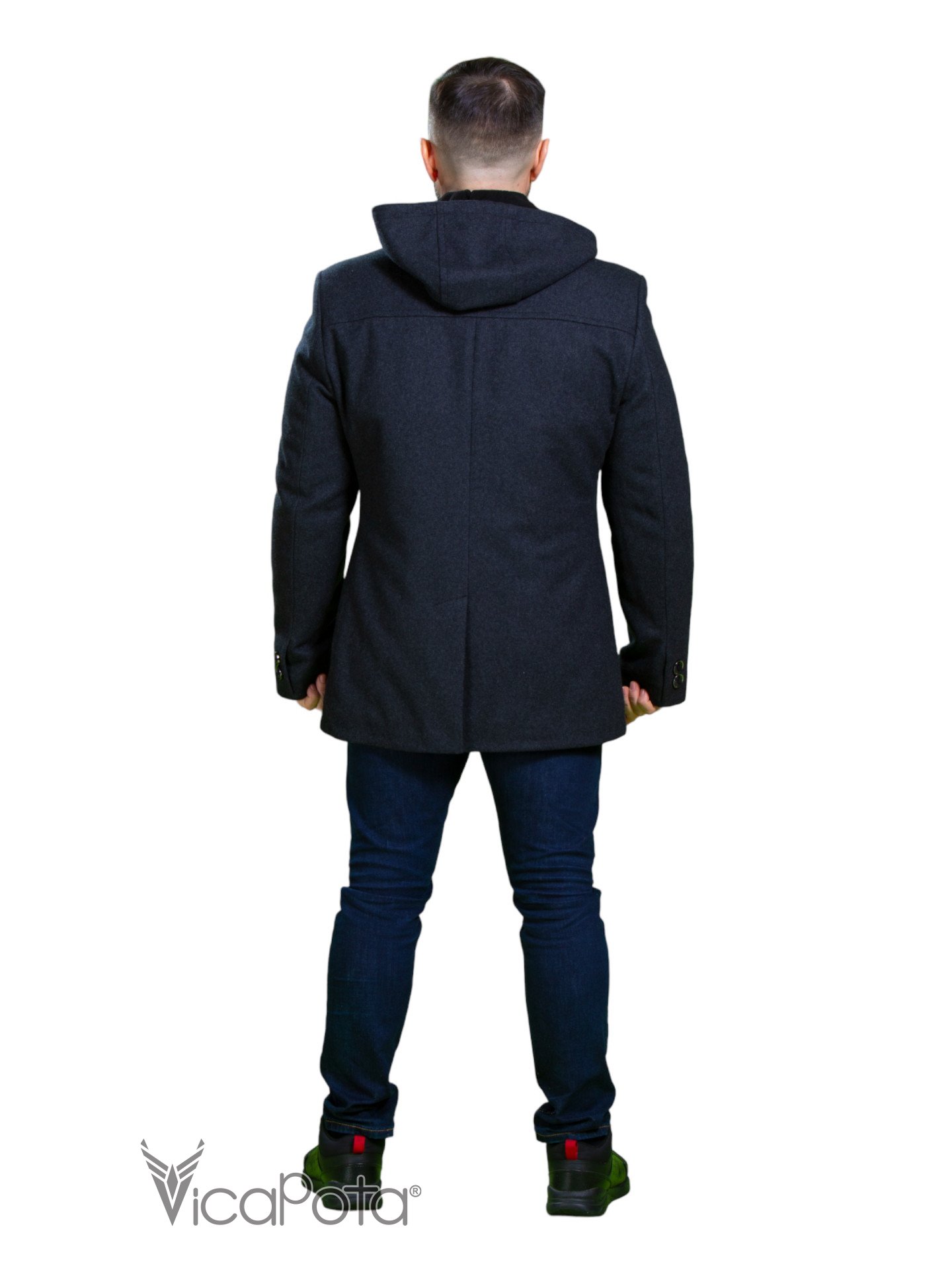 Чоловіче сіре однобортне пальто . Приталений силует, каптур знімний, урізні кишені. Застібка ґудзика. Пальто зі шліцом. Додаткове утеплення - синтепон. Стиль класика, кежул. Довжина 75 см. Тканина верху: cashmere 20%, wool 80% Підбивка - поліестер - 100% Утеплення синтепон.