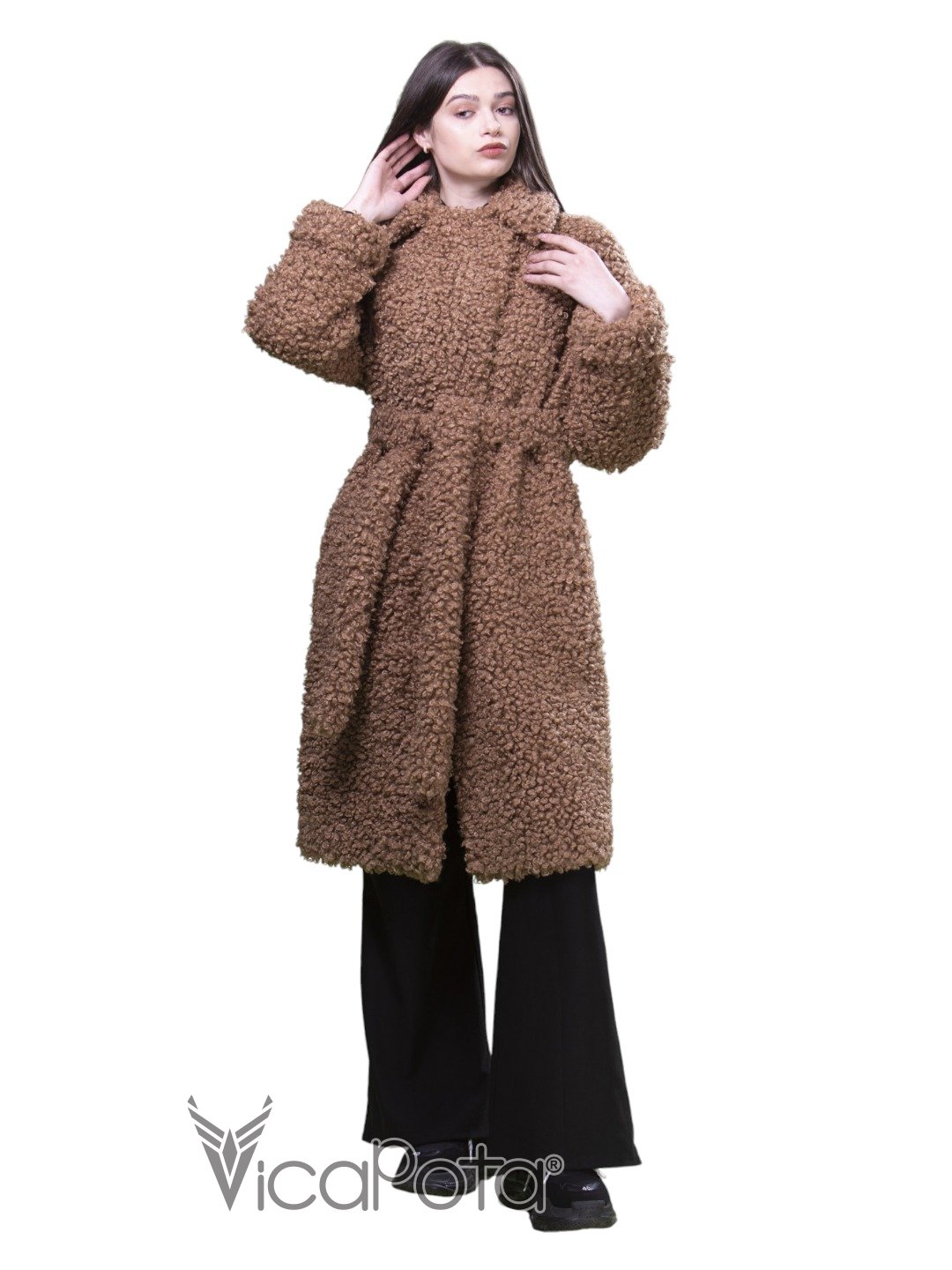 Новинка, еко шубка з вовни. Колір camel, довжина 100 см , малюнок полотна імітація довгошерстою ягнички. Англійський комір із застібкою до самого верху, м'яке плече, втачной рукав, зручні урізні кишені. Еко шубка злегка звужена до низу. Застібка кнопка. У комплекті йде пояс. Шубка з утепленням SLIMTEX (СЛІМТЕКС) - сучасний тонкий утеплювач, створений із застосуванням надтонкого волокна. Шубка тепла й приємна в носку. Склад: 70% вовни, 30% поліестер, підбивка сатин-жаккард. Виміри шубки 46 р. Довжина 100 см., Груди 108см., Талія 106 см., Стегна 110 см, рукав з підворотом.
