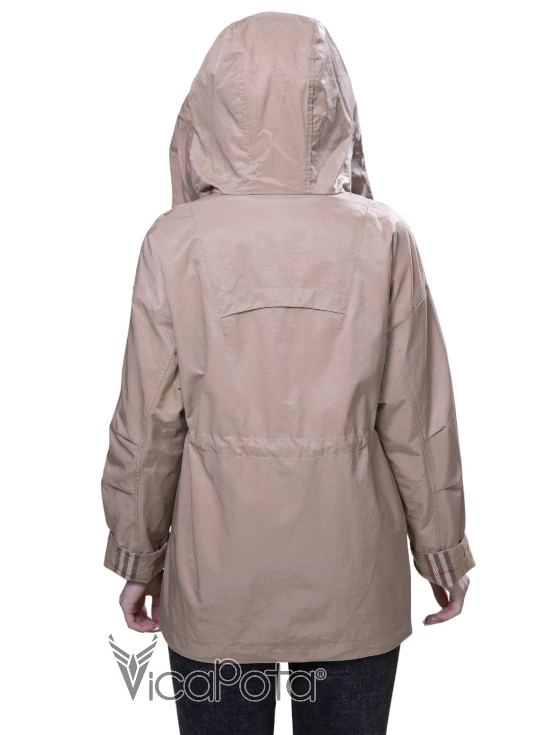 Розмір 38 р.; Об’єм грудей 114 см; Об’єм талії 110 см, по талии кулиска.; Об’єм стегон 112 см.; Рукав регулируется манжетом.; Довжина 75 см.; Колір коричневий.